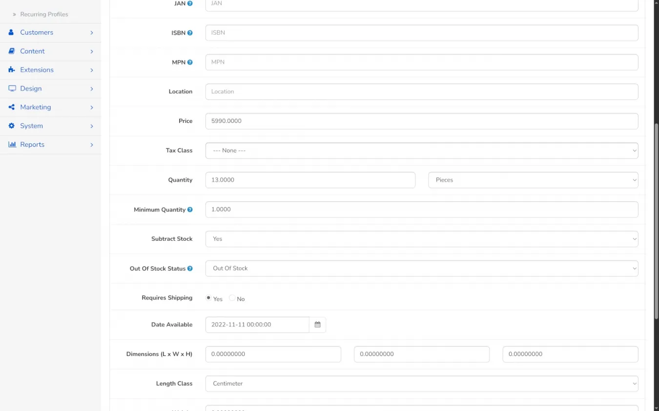 В дефолтном OpenCart количество товара - только целое число. Хочешь продавать ткань по 2.5 метра, доски по 0.75 штуки, краску по 1.25 литра или гвозди по 100.5 кг? Ни в этот раз. Система просто не даст ввести дробь, округлит до 1 и даже ошибку не выдаст. Для многих ниш это важный момент, а vanilla OpenCart тщательно игнорирует эту протребность. Клиент хочет 3.7 метра обоев - а ты ему "нет, ровно 4"!