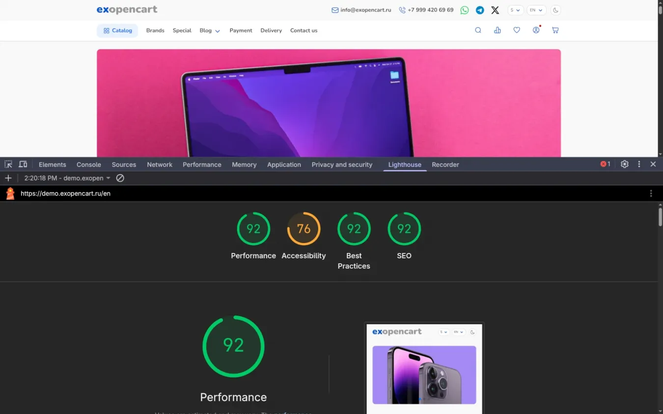 Теперь в exopencart сайт летает (98-100 на десктопах в Google Page Speed и 80-85 на мобилах). Включи сжатие в настройках разработчика - и всё. Никаких лишних запросов, никаких "очисти кэш и обнови страницу".