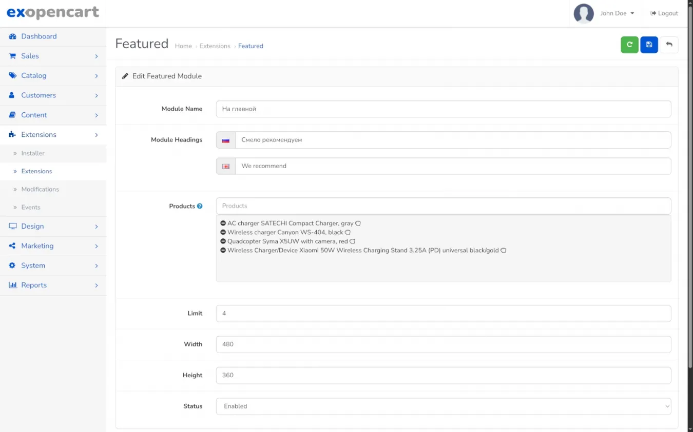 В дефолтном OpenCart делаешь модуль "Рекомендуемые", выбираешь товары, жмёшь сохранить... и получаешь заголовок "Рекомендуемые товары" на всех языках и во всех местах. Один на всех. Хоть ты там 50 разных наборов сделал - всё равно "Рекомендуемые товары". Для новинок и хитов ещё терпимо (ну ладно, "Новинки", "Хиты продаж"), но для рекомендуемых это просто издевательство. Потому что именно этот модуль - самый гибкий инструмент для кастомных подборок. А заголовок один и тот же. Это стыд, даже не говори мне ничего.