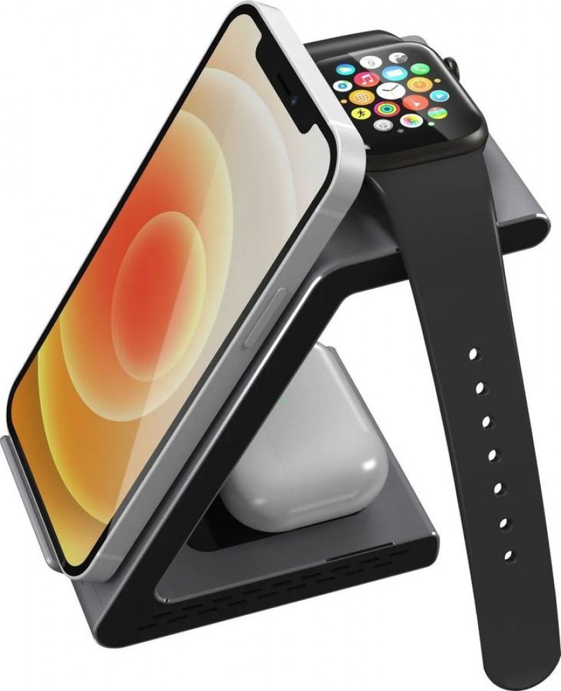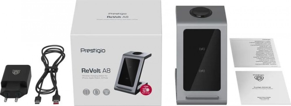 Беспроводное зарядное устройство Prestigio Revolt A9 3 в 1, серый